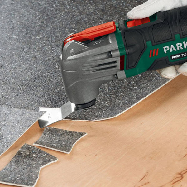 Parkside Multi-Purpose Tool PMFW 310 D2 with rates no load speed 15000-21000 rpm, including accessories. Versatile tool for sawing, cutting, scraping and sanding Ergonomic shape with soft grip and durable metal hed.