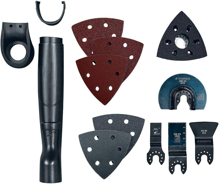 | Rotation speed: 15,000-21,000 rpm Technique: oscillation Power: 310 W 2 plunge saw blades, 1 segment saw blade, 1 scraper, 1 Delta sanding pad, 18 sanding sheets, 1 connection for vacuum system |