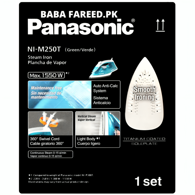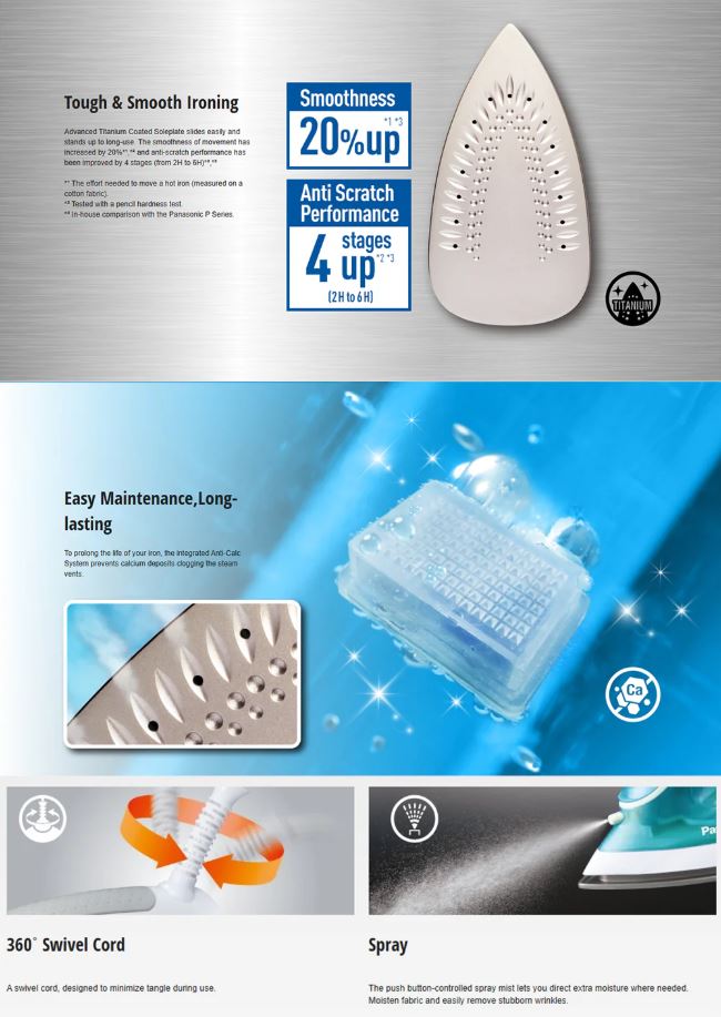 •Tough & Smooth Ironing - Advanced Titanium Coated soleplate