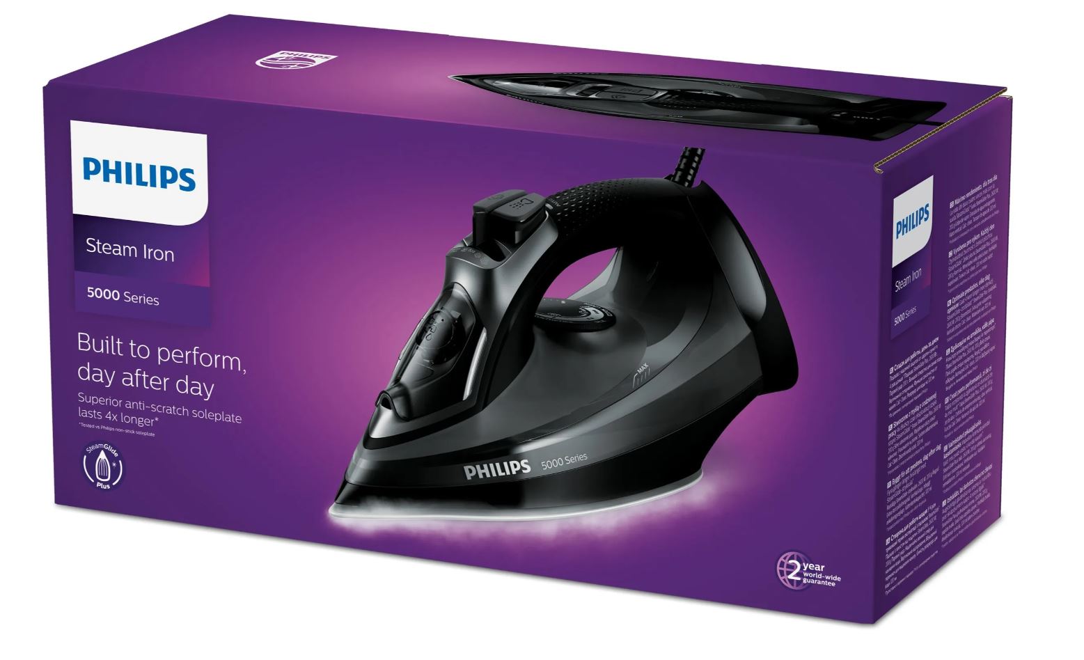 For great results day after day, you want an iron that never lets you down. With its anti-scratch SteamGlide Plus soleplate, high consistent steam output and integrated calc-clean, this high quality iron gives you performance that lasts.